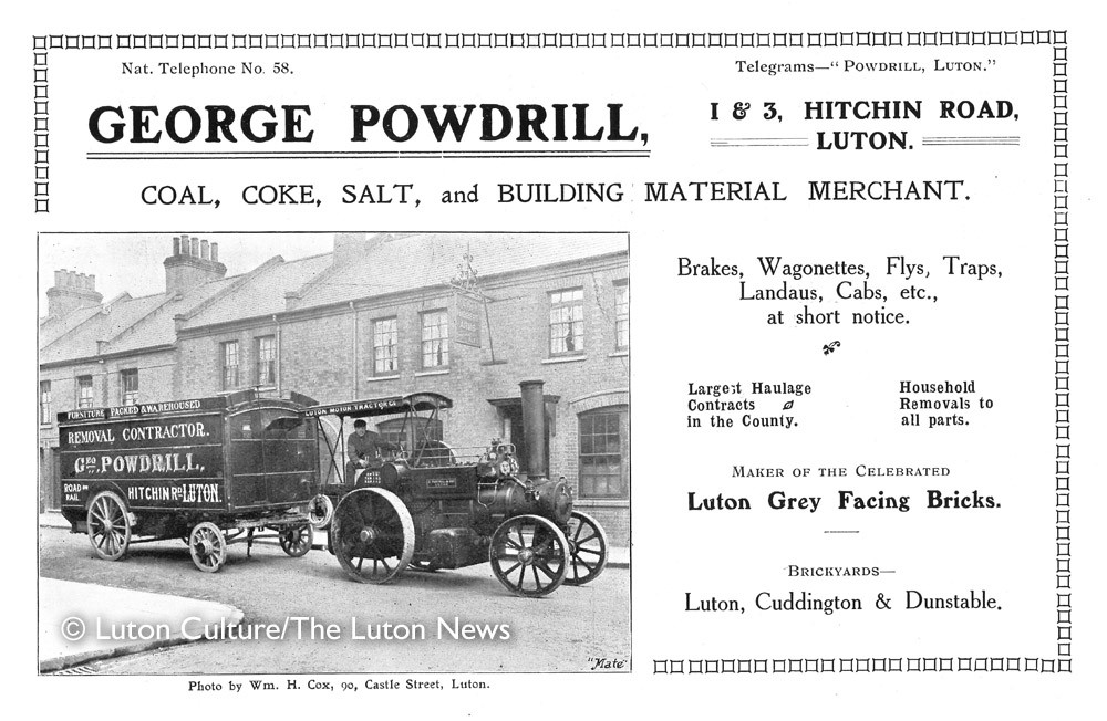 G. Powdrill & Sons Ltd. was finally dissolved in 2017, over 110 years after it was first incorporated. Hints of it still remain, however, as seen on this building in Hitchin Road, built in the year George’s grand-daughter, Marjorie, was born.