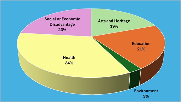 Click here for a detailed list of these grants. See below for a breakdown by category, geographical area and grant size.